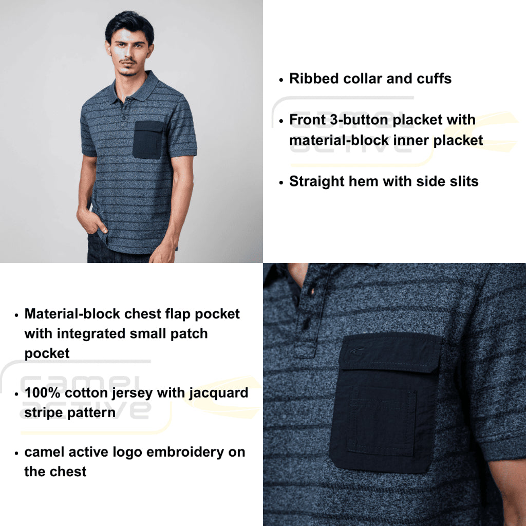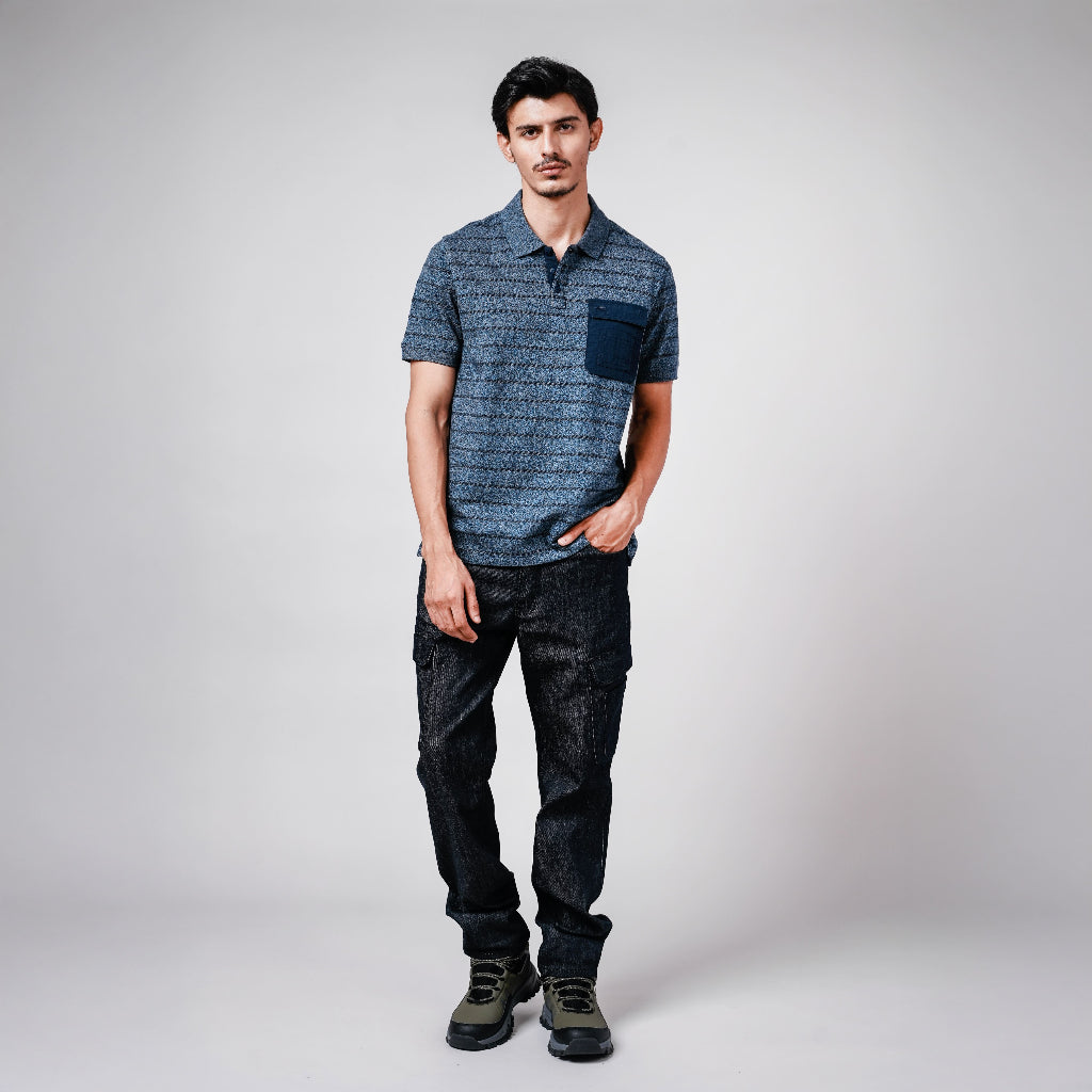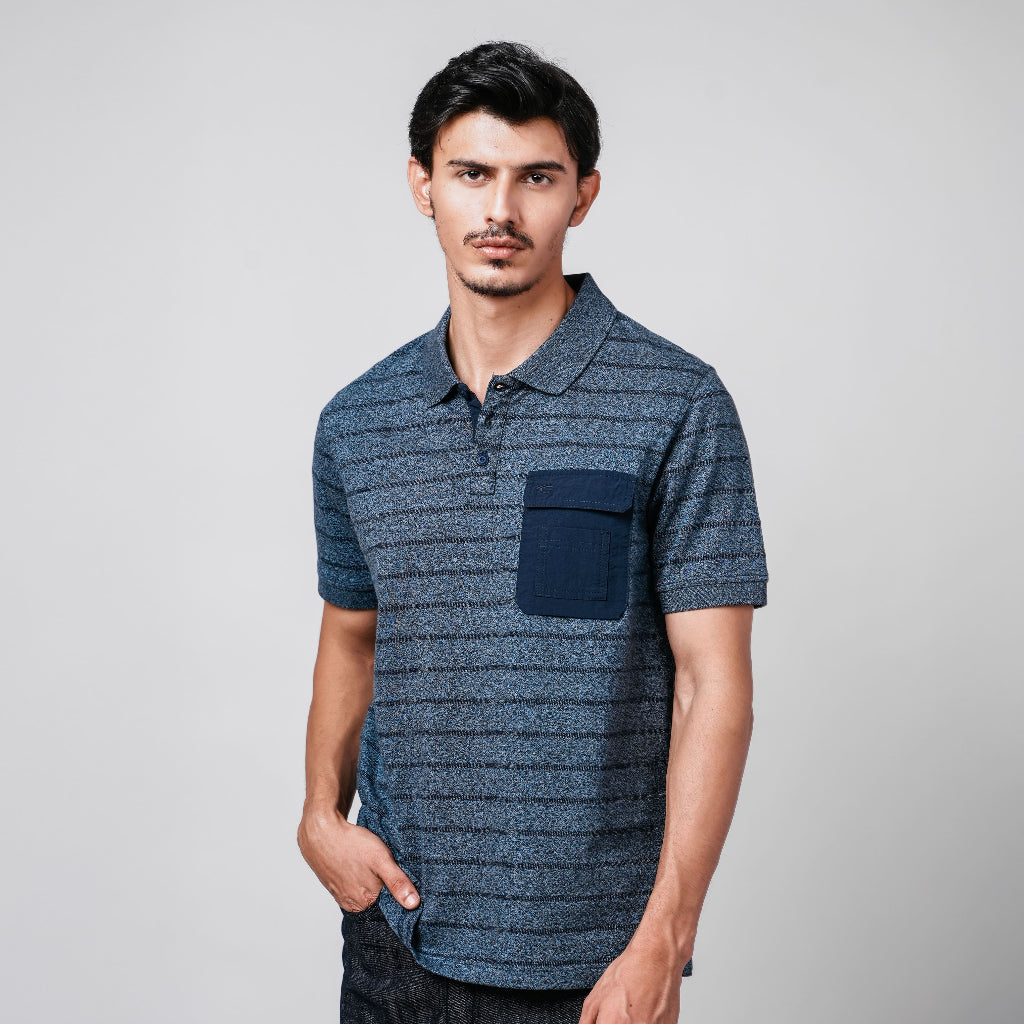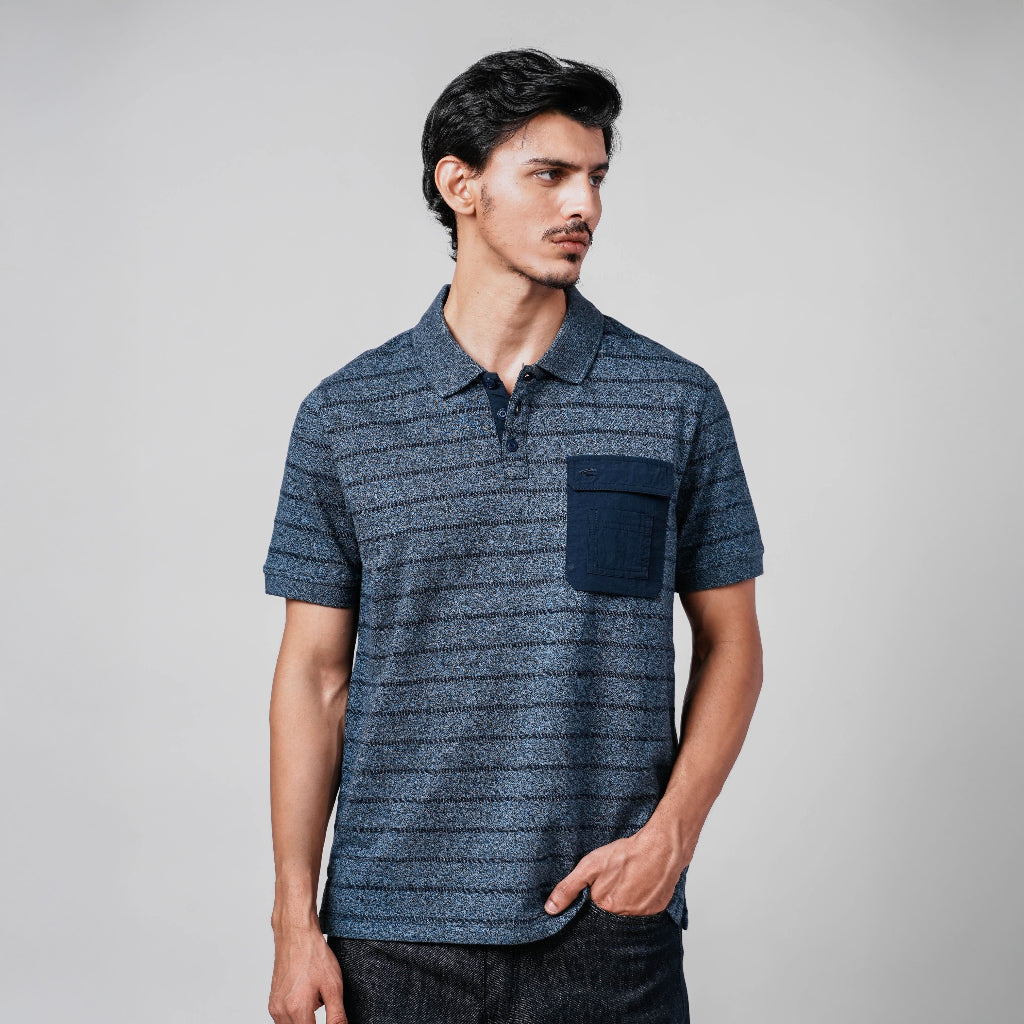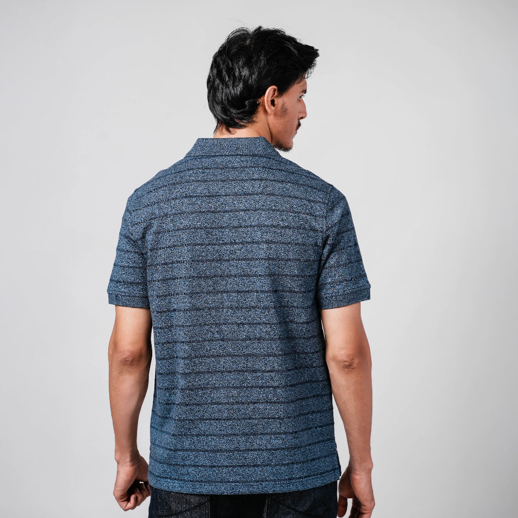 Men Polo Shirt - Regular Fit 100% Cotton Navy Jacquard Stripe Polo-T