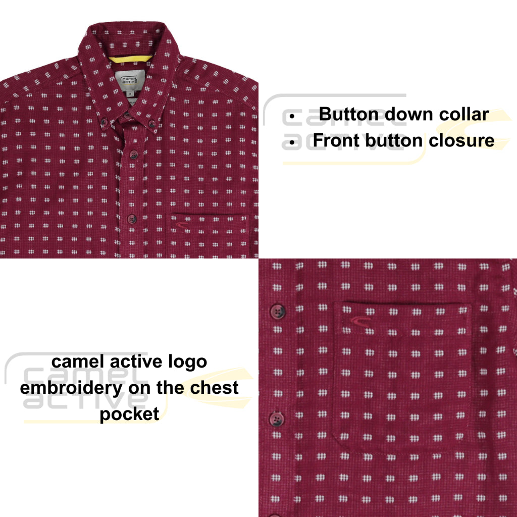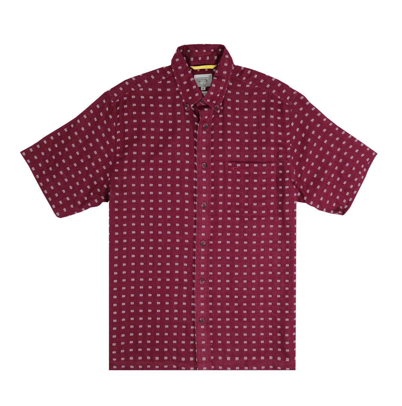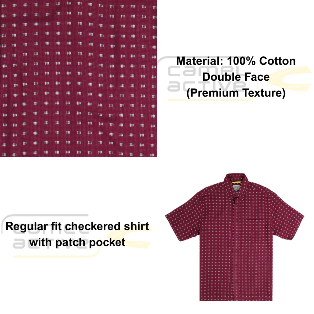 camel active Men's Regular Fit Short Sleeve Checkered Shirt 100% Cotton Double Face Maroon 9-102X26DBY1886