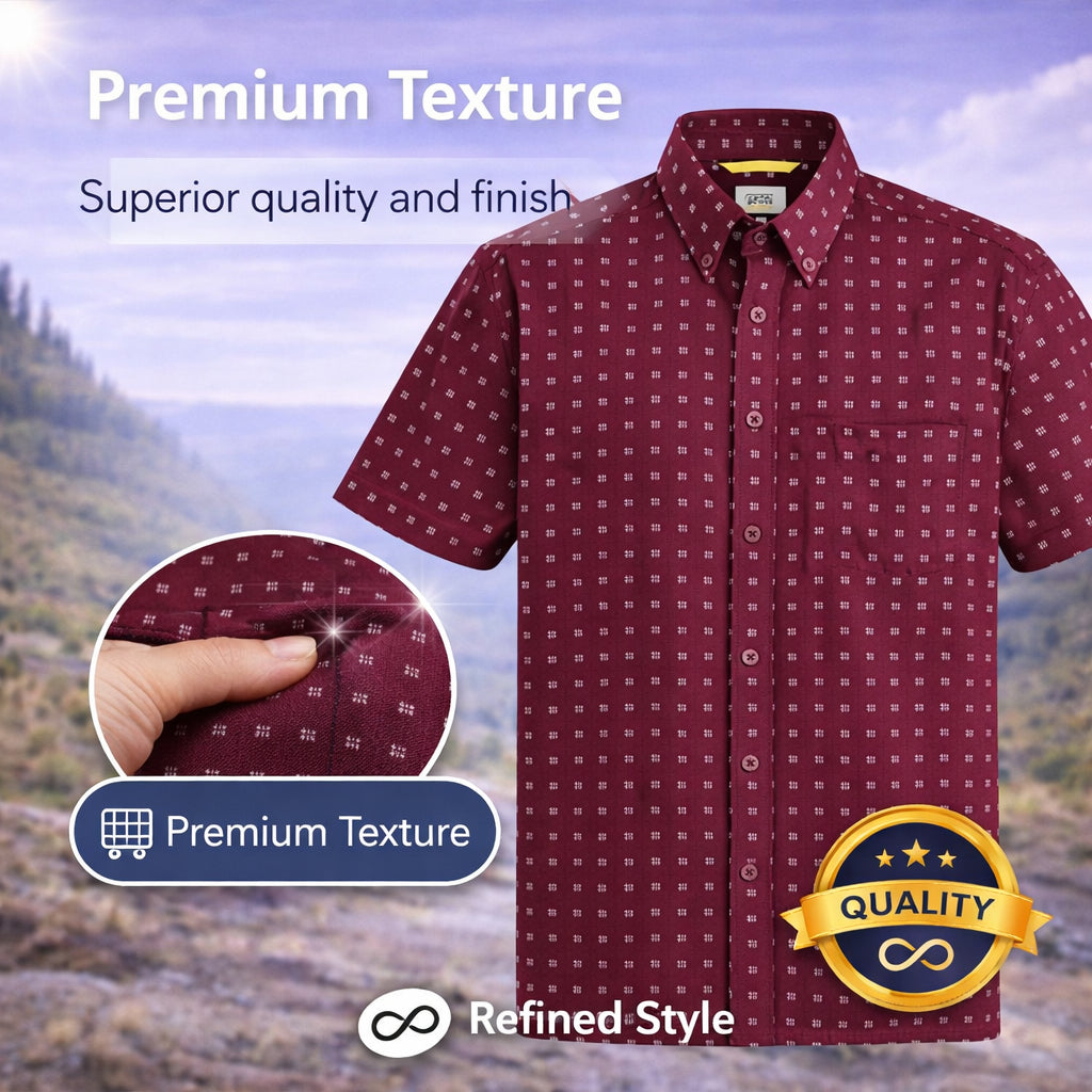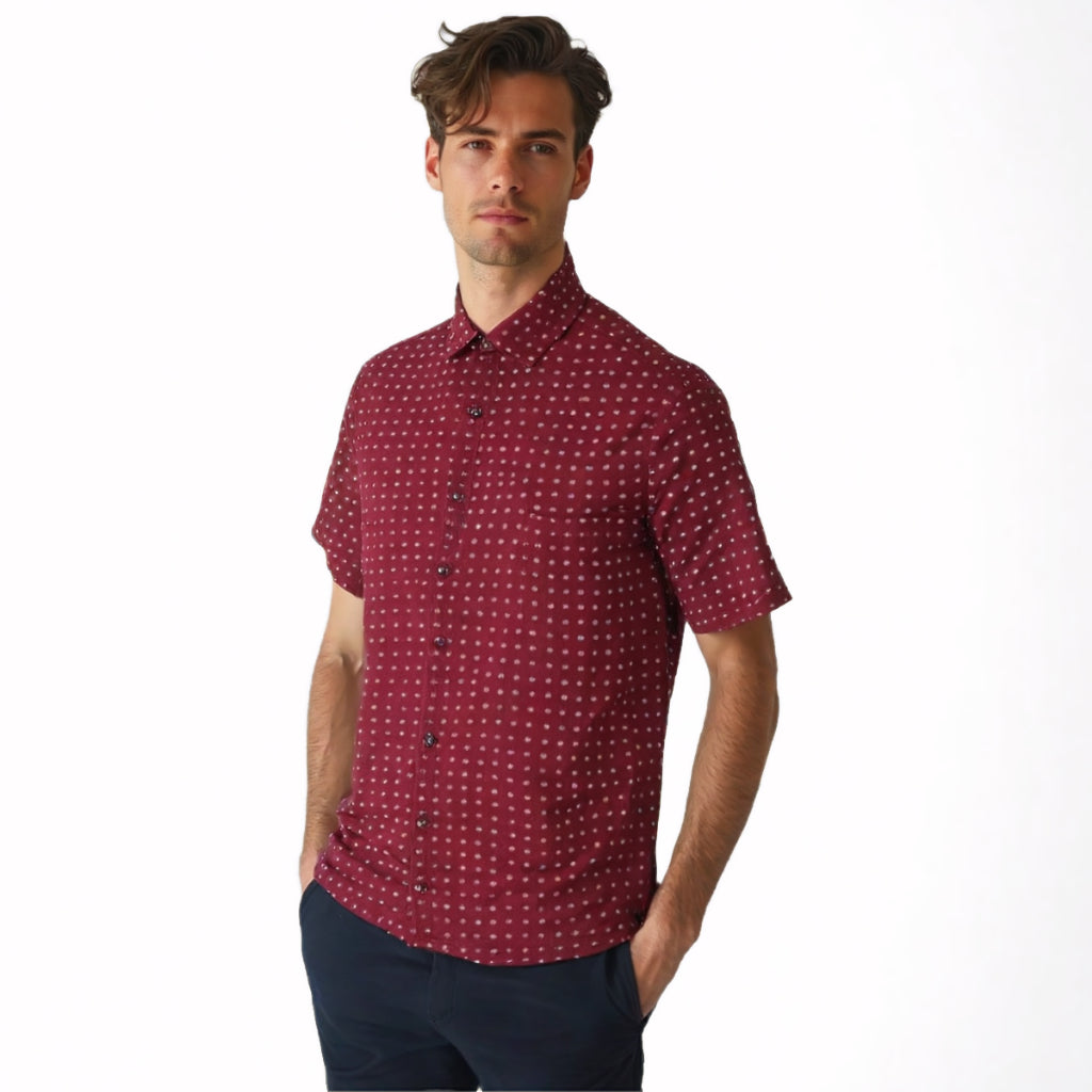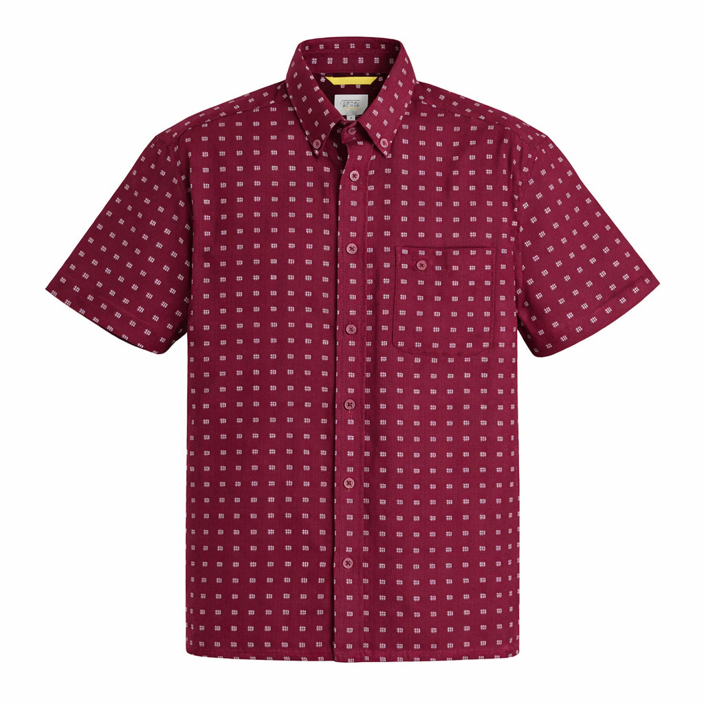 camel active Men's Regular Fit Short Sleeve Checkered Shirt 100% Cotton Double Face Maroon 9-102X26DBY1886